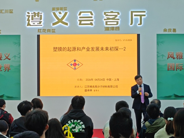 参观过程中,师生团队重点走访了高分子新材料、环保再生技术等特色展区,与行业专家、企业技术骨干深入交流,近距离观摩全球首发的创新产品与尖端设备,详细了解新材料研发、新工艺应用与产业升级的核心路径。我校校友、江苏精良高分子材料有限公司董事长盛承林以“塑膜的起源和产业发展未来初探”为题,为学生上了一堂专业拓展课。学生们结合专业所学,聚焦高分子材料、新能源、高端制造、医疗健康等领域的材料需求痛点,直观感受理论知识与产业实践的深度融合,深刻认识到材料创新在推动新质生产力发展中的关键支撑作用。